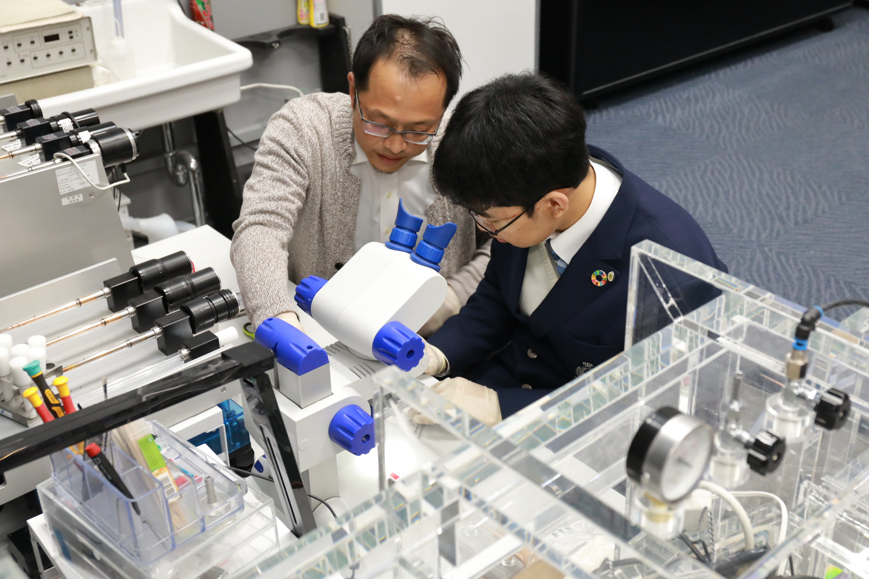 | 本事業は、高校生が大学での学びを体験し、科学の面白さや学びの意味を深く知ることで、「未来を創る科学者」としての第一歩を踏み出すことを目的としています。高校生は、「QFCプライマリー」で講義を受講した後、「QFCリサーチ」で約1年間にわたって指導教員の下で学術研究に取り組みます。 これまで、限られた学内予算から何とか事業費を捻出して本事業を継続してきましたが、令和6年度は、いただいた御寄附を高校生の旅費や研究活動費に役立てることで、より一層高校生に研究活動に専念してもらうことができました。 高校生からは、「本格的な実験に取り組み、多くのことを学べた経験は、人生の大きなターニングポイントとなった。将来の夢の実現に向けて、一歩近づけたと感じている。」等の声が寄せられています。 今後も、本事業を通じて、優秀な高校生を「未来を創る科学者」へと育んでまいります。 QFCプライマリーの様子 研究成果の発表の様子 LINK ・QFC-SP HP |